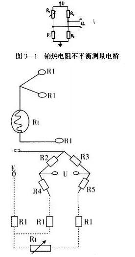 熱電阻測溫是基于金屬導體的電阻值隨溫度的增加而增加這一特性來進行溫度測量的。熱電阻大都由純金屬材料制成,目前應用多的是鉑和銅。我們公司中采用了大量的PT100型號的鉑熱電阻體。PT100類型電阻體對應0℃時阻值為100Ω。標準的熱電阻回路國內一般采用三線制,采用三線制是為了消除連接導線電阻引起的測量誤差。這是因為測量熱電阻的電路一般是不平衡電橋。熱電阻作為電橋的一個橋臂電阻,其連接導線(從熱電阻到中控室)也成為橋臂電阻的一部分,這一部分電阻是未知的且隨環境溫度變化,造成測量誤差。采用三線制,將導線一根接到電橋的電源端,其余兩根分別接到熱電阻所在的橋臂及與其相鄰的橋臂上,這樣消除了導線線路電阻帶來的測量誤差。