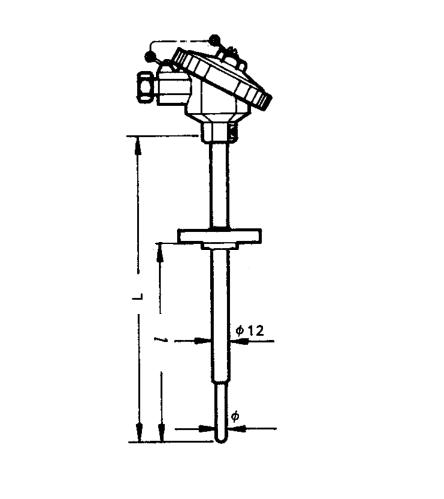 WZP-2312A(WZP-2316A、WZP-4312A、WZP-4316A)型裝配式熱電阻安裝固定裝置有固定螺紋、活動法蘭盤、固定安裝法蘭盤和帶固定螺栓錐形保護管裝置等形式。由于熱電阻傳感器采集溫度點在桿端部位置,為了保證熱傳遞采集速度以及檢測需要在傳感器的端部采用縮徑異徑測溫方式,一般桿端采用φ8mm或者φ6mm的測溫端。